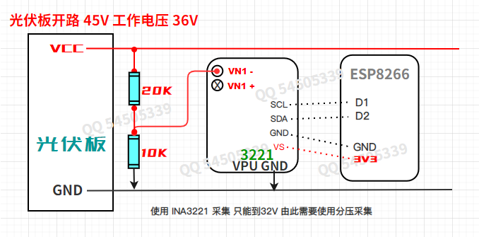 我需要采集 光伏板 电压, INA3221 超过 32V 以上就无法采集